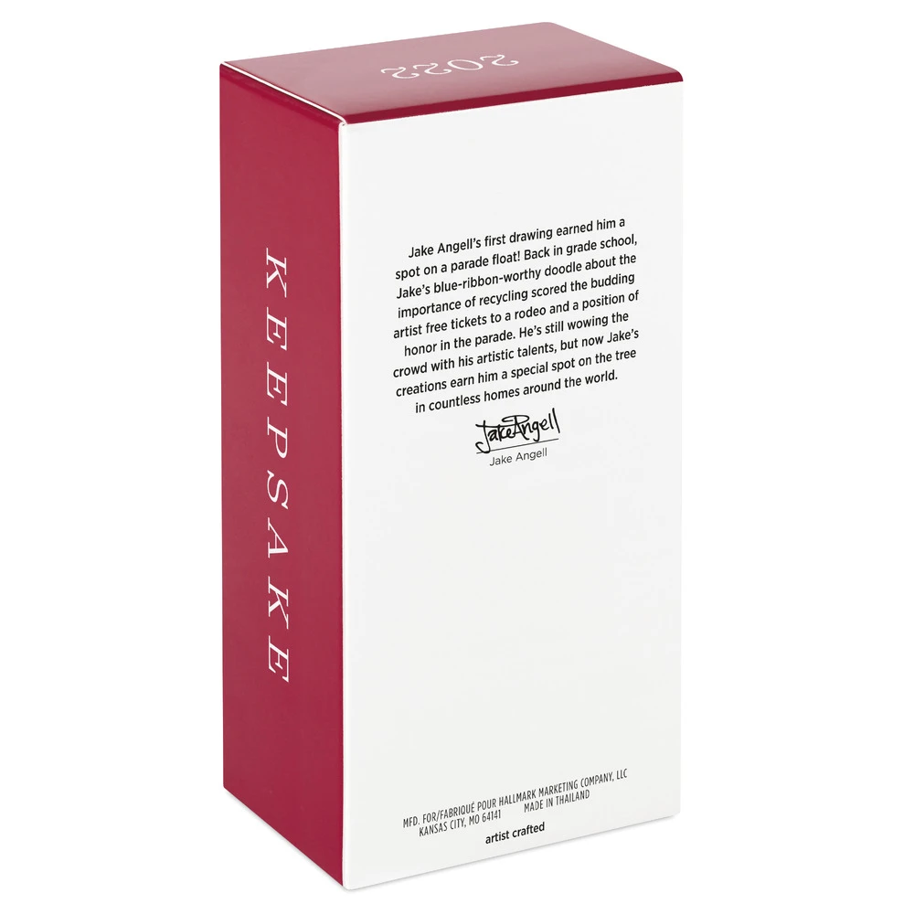 – Additional Details: Artist crafted by Jake Angell. Plastic Christmas tree ornament.