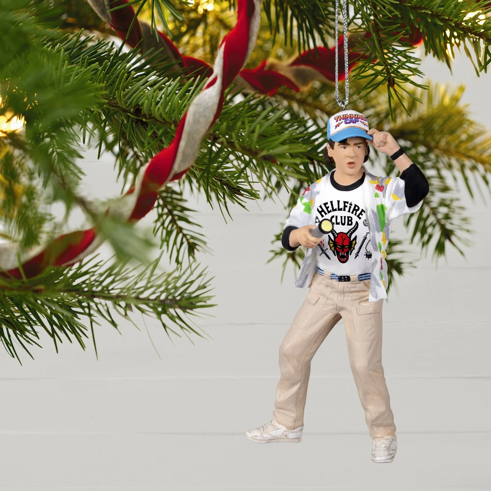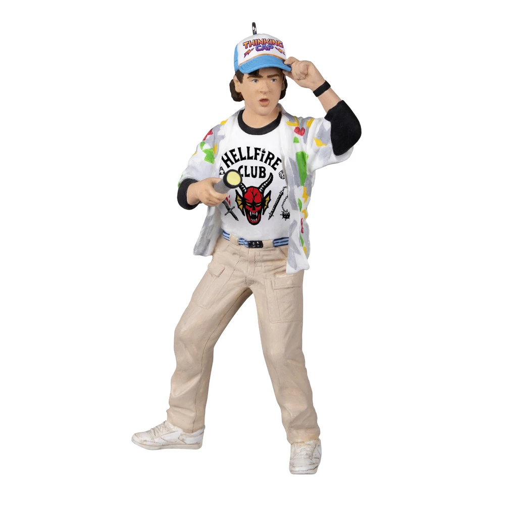 Put on your Thinking Cap! Level-headed and scientifically minded, Dustin Henderson often acts as a negotiator within his friend group, even while battling various villains and monsters from The Upside Down. This Christmas tree ornament features the lovable member of the Hellfire Club—the role-playing game club at Hawkins High School—who confronts supernatural mysteries alongside his friends Eleven, Mike, Lucas, Will and Max in the Netflix original series “Stranger Things.”