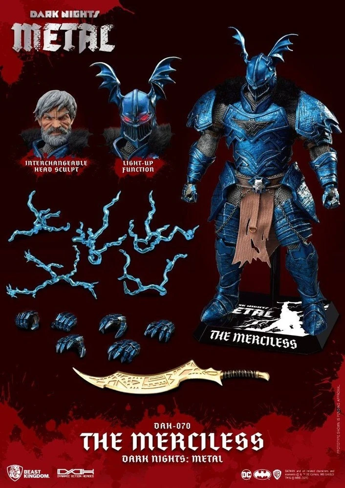 Beast Kingdoms?Dynamic 8action Heroes) series under the Entertainment Experience Brand launches the latest DAH figure standing at an intimidating 20.5 cm in height. A detailed take on Batman The Merciless, every feature including the distinct blue armor and the Aries helmet with elongated bat wings and LED light-up eyes are accurately modeled!