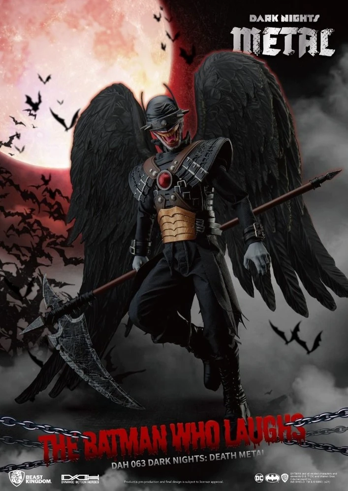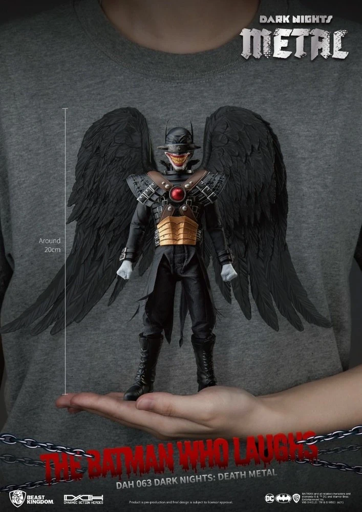Beast Kingdoms Dynamic 8ction Heroes series of highly articulable action figures launches the DAH-063 Death Metal Batman Who Laughs’ , a figure representing a character of fear and madness! Standing at 20cm in height and with over 26 points of articulation, the figure brings to life the crazed, wide mouthed face with 2 replaceable head sculpts. The Death Metal inspired clothing is represented in all its glory using real cloth for the suit. The signature wings and long handled sickle are also included for fans to enjoy. Recreate the magic from the comics by posing the DAH Batman Who Laughs from the many scenes that are now iconic. Orders yours from an official Beast Kingdom outlet today!