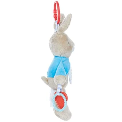 Cute and playful, the Beatrix Potter Peter Rabbit Activity Toy in blue is an adorable interactive toy your little one will love. With appealing character detail, a teether, beaded rattle, peak-a-boo mirror and crinkle, playtime fun will last for hours. The on-the-go clip makes this activity toy easy to attach to a crib or stroller for on the go fun!