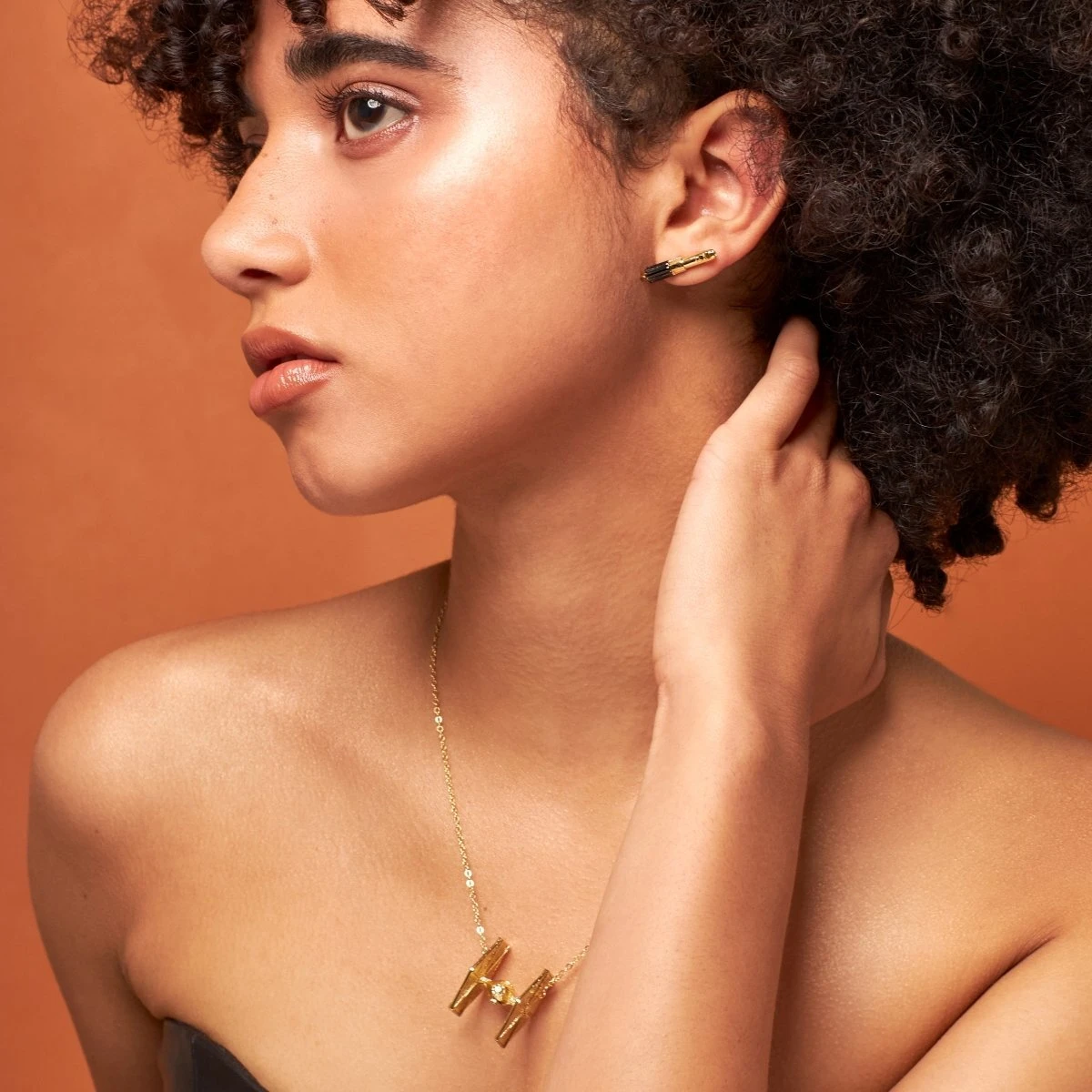 DISNEY COUTURE KINGDOM – STAR WARS – DARTH VADER AND LUKE SKYWALKER LIGHTSABER STUD EARRINGS YELLOW GOLD AND GUNMETAL PLATED