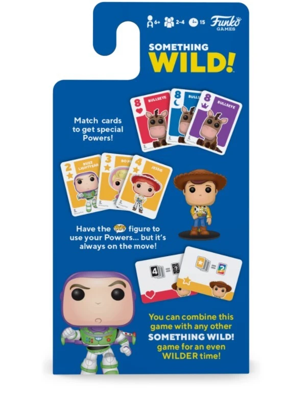Play an easy and fun card game with the family and some of your favorite Disney characters with Toy Story edition of Something Wild. Players try to earn Power cards by making sets (three cards with the same number) and runs (three cards of the same color, in number order). Whoever can use their Power cards to score three points first is the winner.