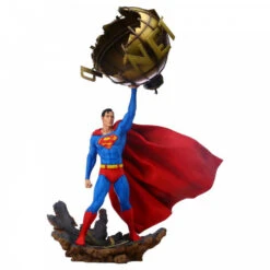 This 1:6 scale premium format statue of Superman captures his majestic power and unbowed determination to protect Metropolis city. The Man of Steel is featured standing on top of a piece of asphalt street holding a bronze half-dome of the shattered Daily Planet globe. This piece is a stellar representation of the very hope that Superman embodies.