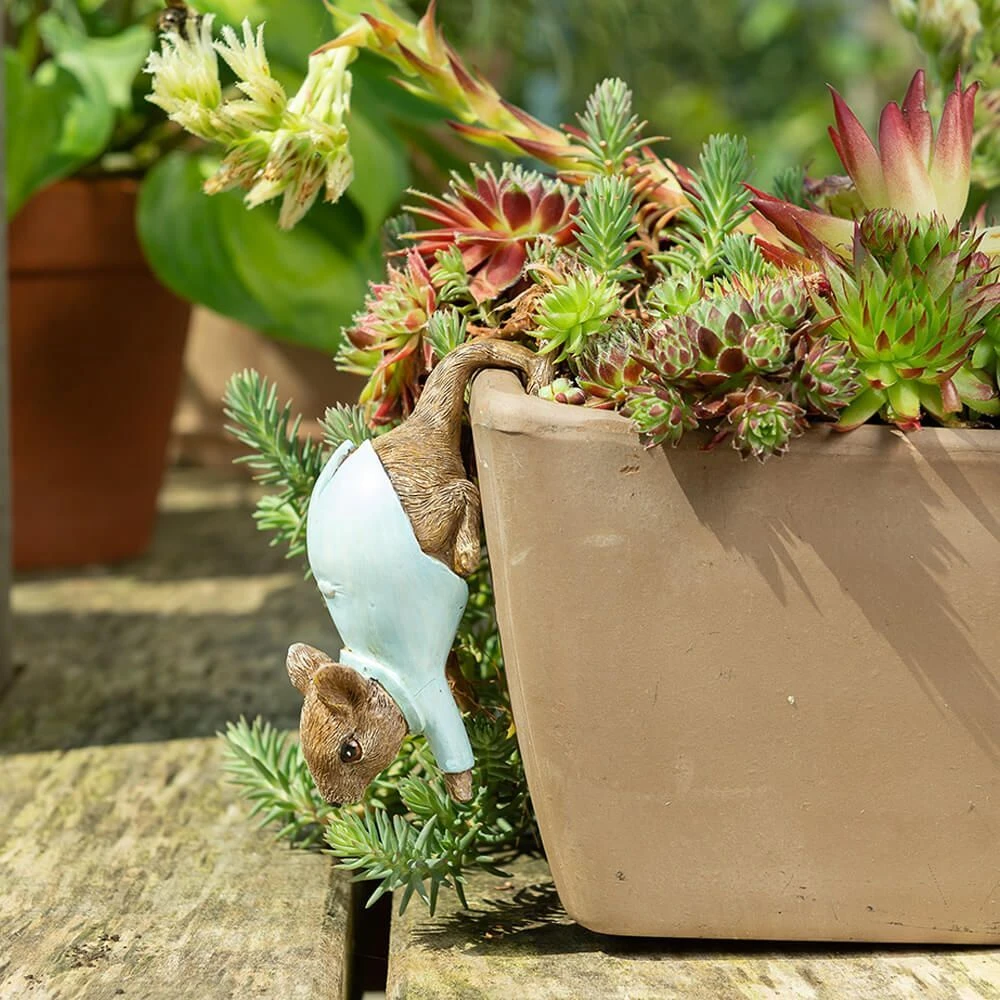 Add a touch of glamour and character to your pot or planter with this beautiful Beatrix Potter Johnny Town Mouse Pot Buddy. Made from a durable polyresin and crushed stone based material, these cane companions are frost proof, UV resistant and hand-painted using lead-free products – meaning you can leave it outside all year around in cold or hot temperatures. This pot buddy is versatile, it can be used indoors on vases, mirrors, lamps, fruit bowls or anything with a ‘lip edge’ that she can hang on to! Each pot buddy is beautifully gift packaged using 100% recycled kraft card materials. Pot Buddies make ideal gifts for any occasions, Beatrix Potter fans, animal lovers and those with a green thumb will love this piece.