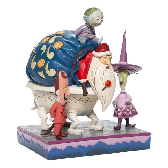Lock, Shock, and Barrel have cancelled Christmas. The mischievous brothers have kidnapped Santa himself and are now subjecting him to who knows what! With sinister smiles to make Jack Skellington proud, this Jim Shore effigy delights and frights.