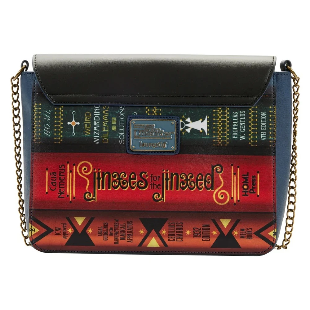 Class is in session! Brush up on your studies of wizardry with the Loungefly Fantastic Beasts Magical Books Chain Strap Crossbody Bag. This spellbound accessory displays the decorative spines of books containing magical topics of study required for students at Hogwarts. Among the texts youÂ’ll find Achievements in Charming, Extreme Incantations, Weird Wizarding Dilemmas and Their Solutions, Sonnets of a Sorcerer, and more. With plenty of room to hold your classroom essentials, this enchanting crossbody bag will keep your belongings safe on any adventure.