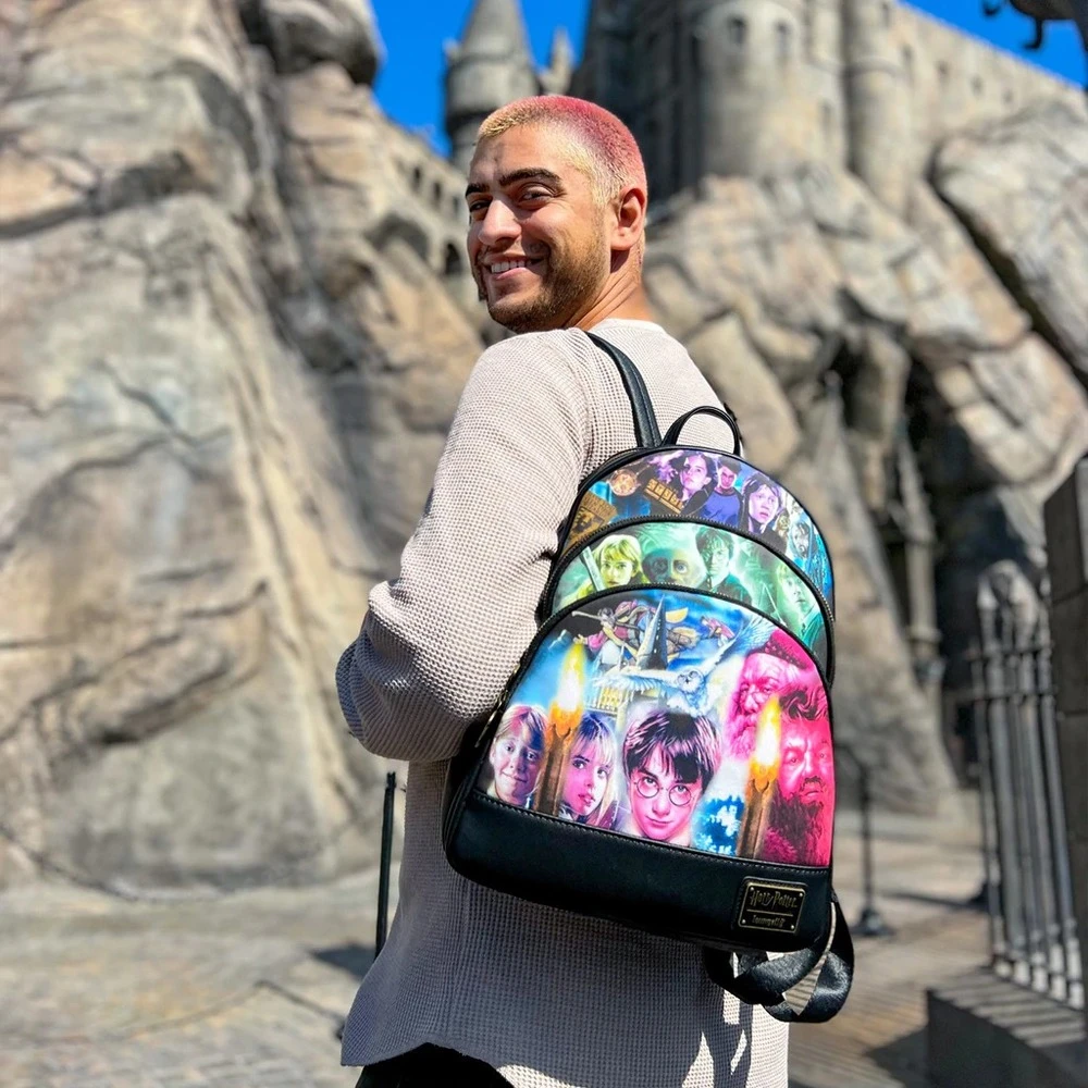 Wave a wand and conjure up your favorite scenes from the Harry Potter film series. Join Harry on his adventures with this Harry Potter Trilogy Triple Pocket Mini Backpack. Each pocket is dedicated to a Harry Potter movie, beginning with Harry Potter and the Sorcerer’s Stone. On the back, the Hogwarts School emblem appears in gold foil detail, with the motto: “Draco Dormiens Nunquam Titillandus” (Never Tickle a Sleeping Dragon.)