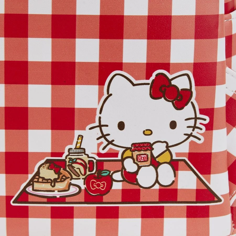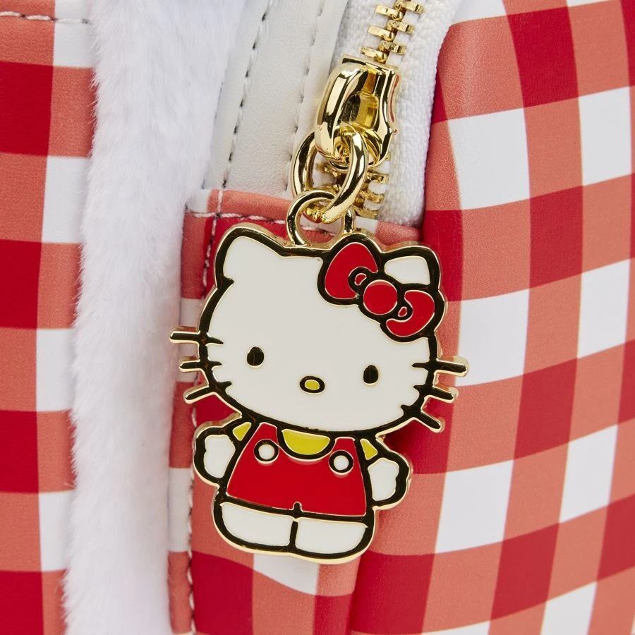 The perfect picnic is all squared away and topped with a bow! Take along our Loungefly Sanrio® Hello Kitty Gingham Cosplay Mini Backpack to share smiles and friendship wherever you go. This red-and-white-checkered backpack features Hello Kitty’s adorable face in cuddly plush and embroidered detail. Her matching gingham bow finishes the look in supercute style. The front pocket adds a lovely touch, and the enamel zipper charm allows Hello Kitty to make an encore appearance. On the back, she has spread out a picnic blanket and is enjoying all kinds of treats. It’s the perfect accessory for meeting up with friends for a special outing—or for turning everyday journeys into cheerful adventures.