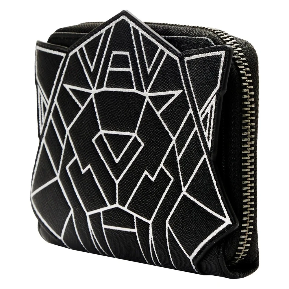 Rise and embrace the legacy of Wakanda. The Loungefly Black Panther: Wakanda Forever Zip Around Wallet uses a unique geometric design to form the shape of a roaring black panther. On the front, silver outlines of geometric shapes create the image of a panther as it bares its teeth. Turn the wallet around to find a Wakandan-inspired design. With four slots for holding cards and a clear slot for holding ID, this heroic accessory will keep your belongings safe on any mission.
