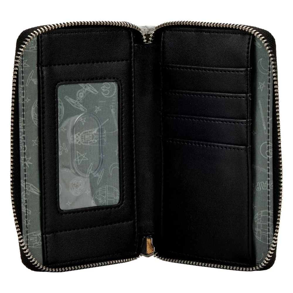 Parenthood is a galactic responsibility. The Loungefly Darth Vader Comic Strip Zip Around Wallet displays an all-over print of Darth Vader with a young Luke and Leia. Featuring artwork by Jeffery Brown, these comic book-style panels imagine endearing scenarios of Darth Vader as he experiences the everyday challenge of raising two of the galaxy’s finest heroes. This playful accessory adds a spark of joy to any occasion and is sure to uplift your Star Wars collection.