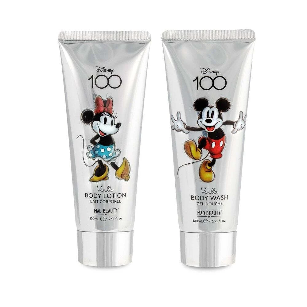 This Disney 100 inspired celebratory gift set includes a body puff and 100ml body wash and body lotion featuring vintage Mickey and Minnie artworks and fragranced with warming vanilla. Use the puff to work the body wash into a luxurious foaming lather and follow up with the lotion to lock in moisture and lightly scent the skin. Twisting the base on the keepsake domed display box reveals classic stills from some of the earliest Disney productions.
