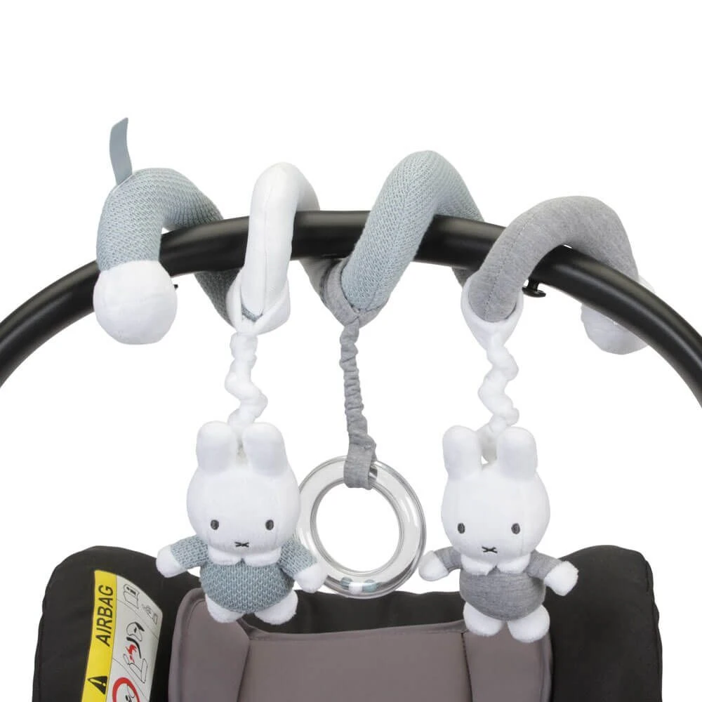 The Miffy spiral toy is practical and fun, all your child’s senses will be awakened! It features a plastic ring with coordinated beads and its different textures, colours are perfect for developing Baby’s fine motor skills. The spiral toy can be attached to a crib or on the stroller to encourage Baby to grab. Perfect for the development of hand-eye coordination.
