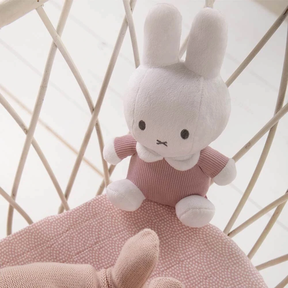Dick Bruna’s world-famous rabbit, Miffy, is an asset to any baby room! This Miffy is 20cm in size with a soft pink rib design. Lovely for your child to cuddle with and Miffy will soon become your child’s best friend!