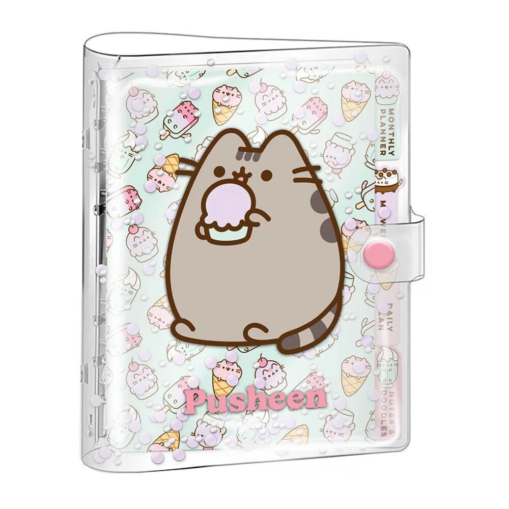 Recap and reflect on the day with this adorable Pusheen Ice Cream Planner. Cover features an illustration of Pusheen eating ice cream. Features PVC cover filled with sequins. Features four tabs- Monthly Planner, My Week, Daily Plan and Notes & Doodles.