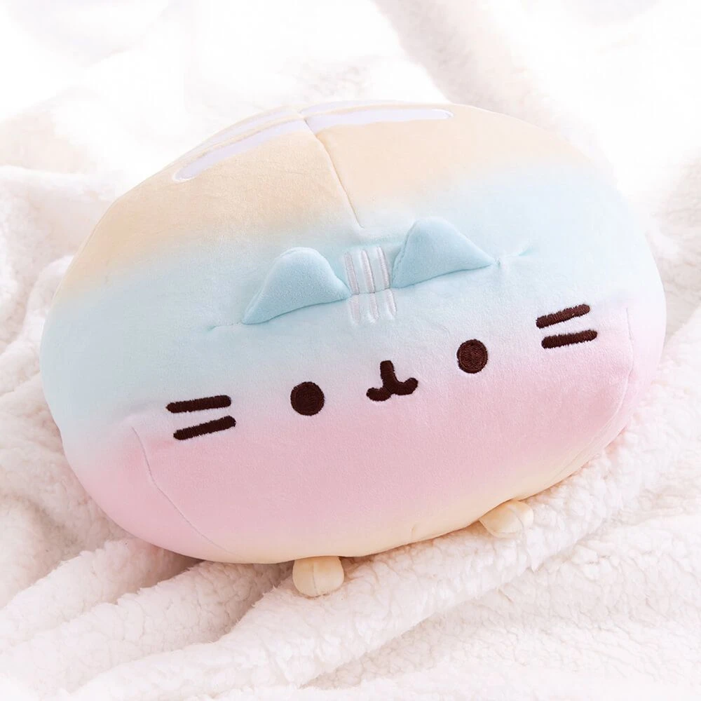Pusheen is here as a round, delightfully squishy Squisheen! Made from a super-soft elastic fabric, this round pastel rainbow ombre Pusheen plush features Pusheen’s signature smile, paws and tail, all in a huggable round shape. Multi-coloured and surface-washable for easy cleaning. Appropriate for ages 8 and up. Each Pusheen Squisheen plush ships in a protective poly bag.