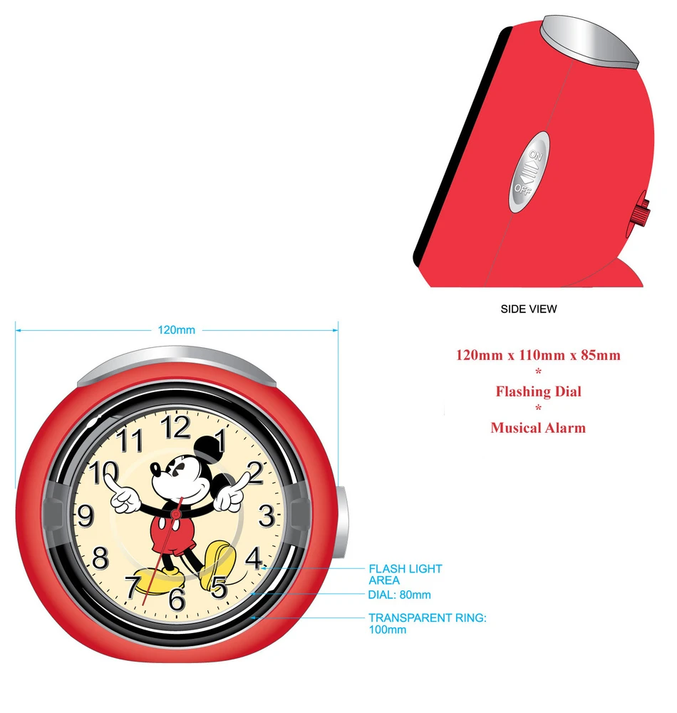 The Original Mickey Mouse Collection Table Clock features light up numbers and a musical alarm that plays the original Mickey Mouse Tune. Makes the perfect gift for Mickey Mouse fans.